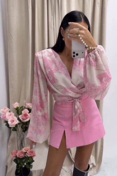 SPÓDNICO SPODENKI JEANSOWE RÓŻOWE Z ROZCIĘCIEM LAMILLA